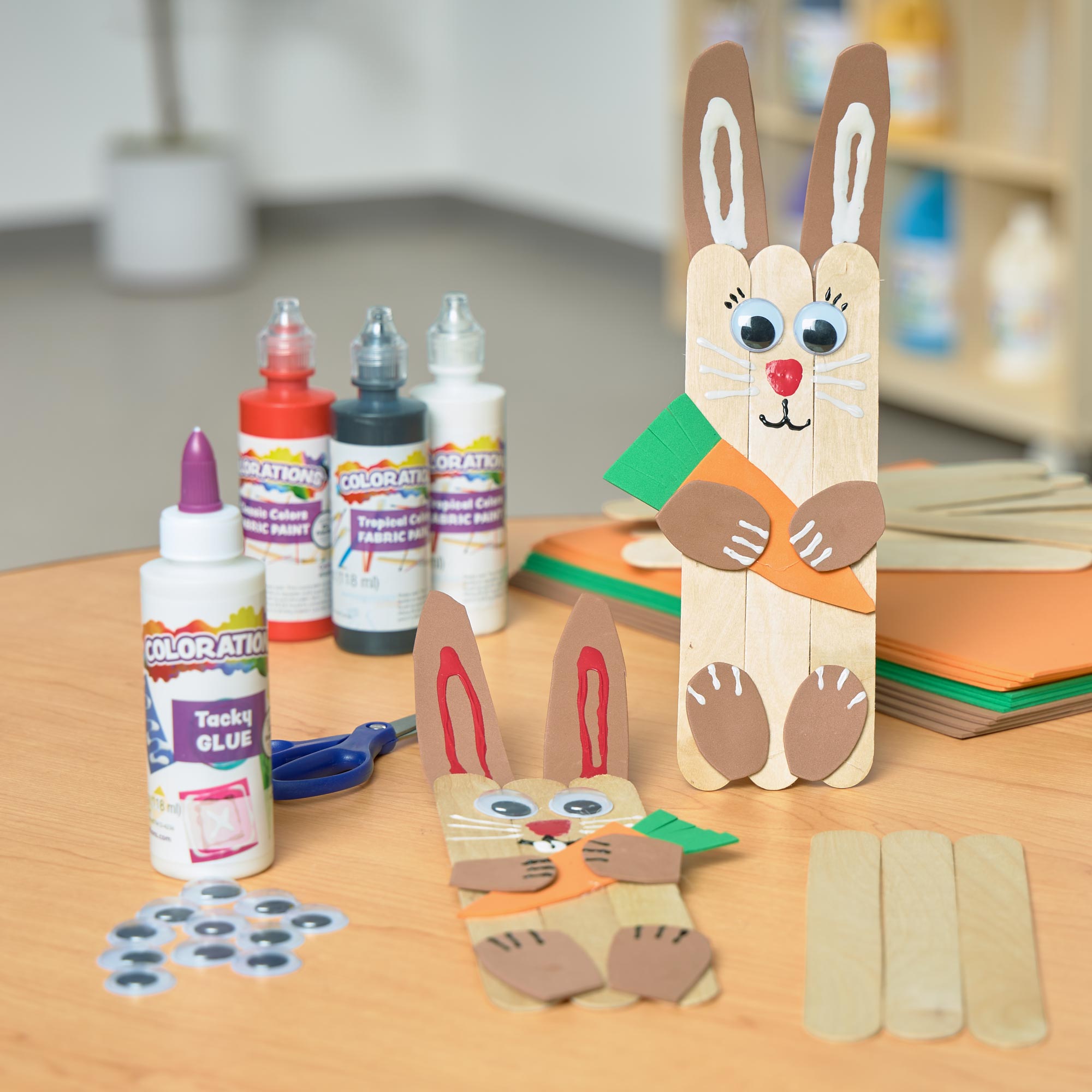 Glue 3 jumbo craft stick together to form the body of your bunny, let dry.